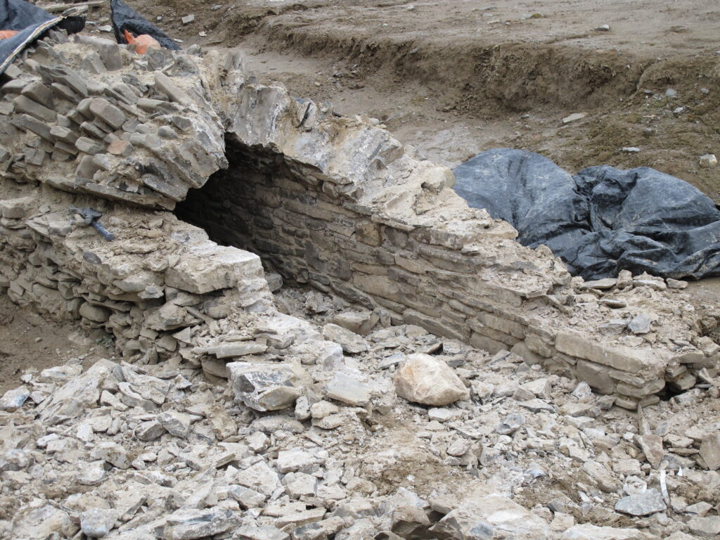 The project faced significant challenges due to the fragility, size, and undocumented complexity of the buried materials. Since budget and time constraints prevented piece-by-piece mapping, the team implemented a pragmatic yet detailed recording approach: high-resolution photography, measured surveys, condition reports, and strategic mortar sampling were used to capture data for future reconstruction. Each section of the historic drains was divided into measured two-metre segments and dismantled using non-invasive hand tools to avoid damage. Stones and bricks were individually placed on pallets with insulation and separation layers, then tagged with metal ID plates and logged in a detailed inventory system for secure storage. To support this level of precision, the conservation team also custom-fabricated temporary arch supports to stabilize rounded drains during dismantling. Even transport and storage were tightly controlled, with strict guidelines for pallet stacking, protective coverings, and long-term environmental shielding to prevent staining or biological growth.