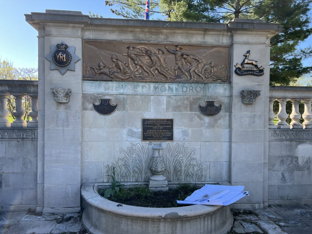 The Boer War Memorial, originally erected in 1906, is one of Windsor’s oldest war memorials and a profound tribute to Canadian volunteers who served in the South African War (1899–1902). Funded by community-driven efforts—especially the Veteran’s Mother’s Committee—it honours residents whose names and battle service are etched into its stone.